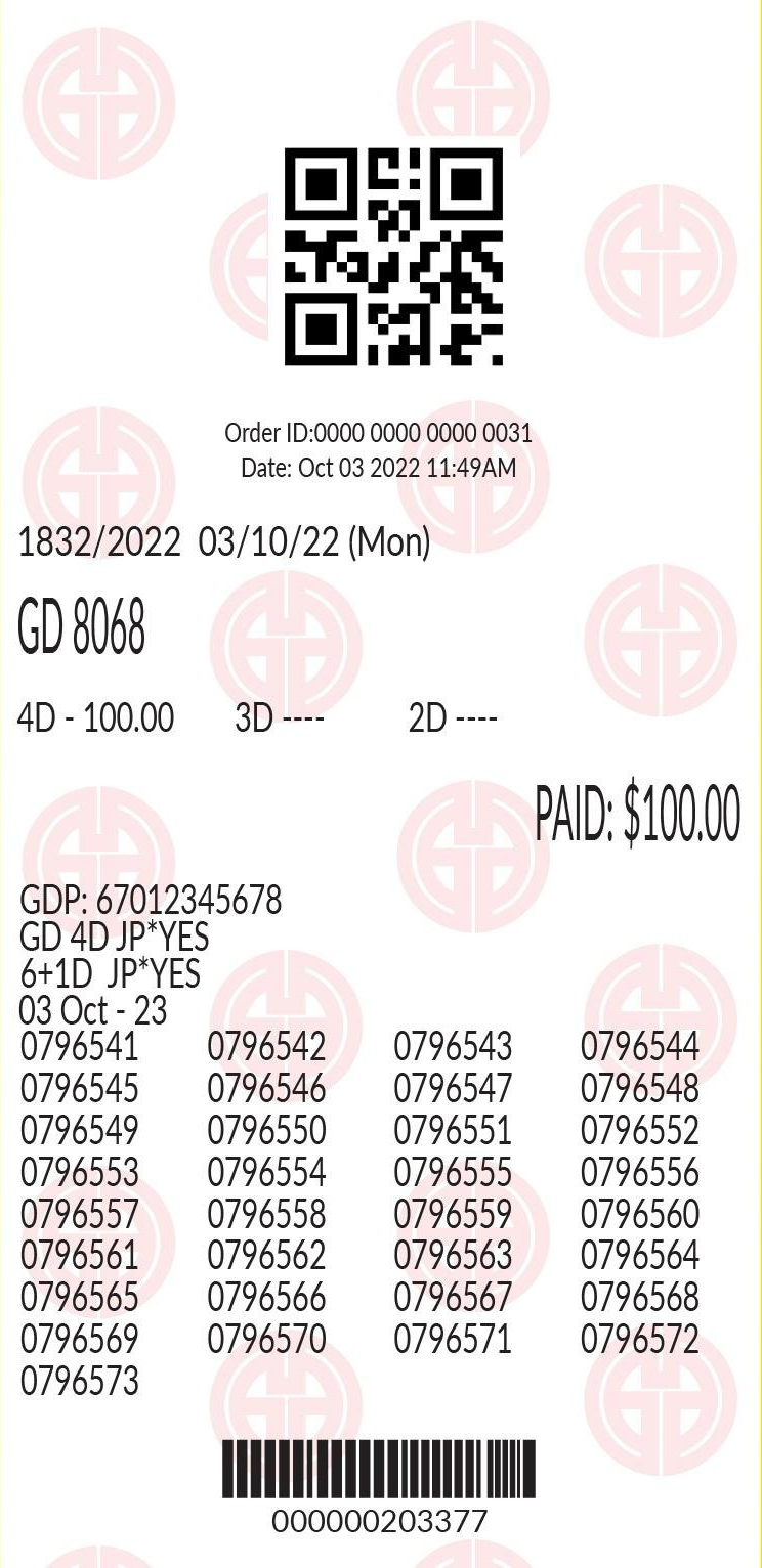 The 6+ 1D Lucky Number will be given daily till the closing time of the day. We will draw the additional number at the end of our 6D drawing to form the 6+1D results! Now, you do not need to worry about your missing ticket after a week, as we will be drawing daily and every receipt maybe the ticket to be our NEXT DAILY WINNER giving you to fulfil your dreams!