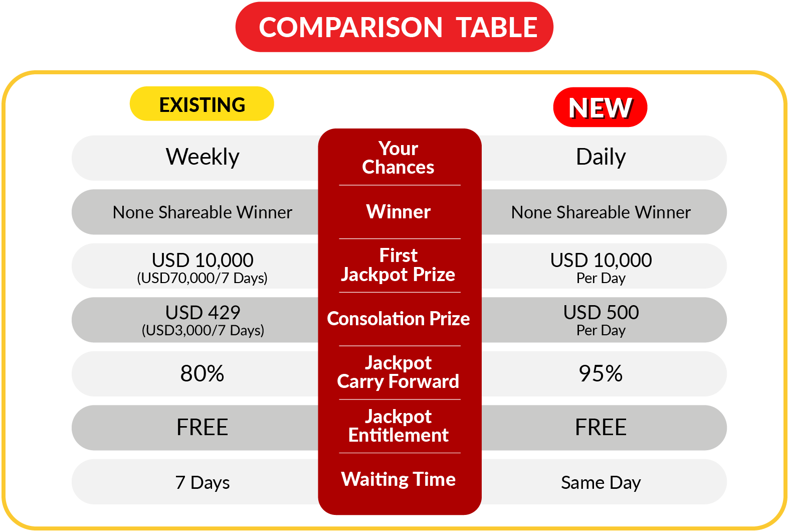 So what's the different between our Daily 4D and Daily 6+1D at GDLotto? Below is the comparison table for you to understand further:
